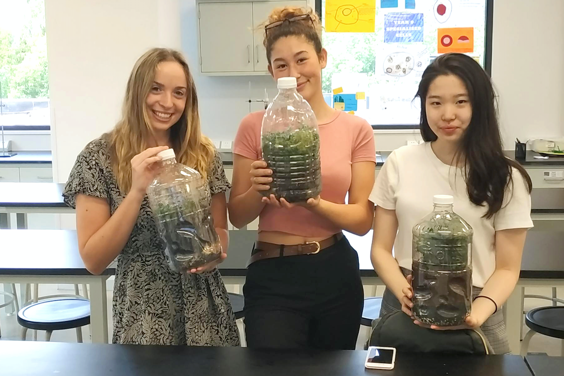 In Environmental Systems and Societies (ESS), students have been creating their own biospheres or mesocosms. Their mesocosms contain soil, vegetation, and perhaps some insects that crept inside. They are sealed, and due to the flows of energy and matter inside, as well as the flow of energy entering the mesocosm, life inside will survive for many, many years. (Well, hopefully until the end of the two-year ESS course!) This links to the ESS course because students have been studying systems in terms of their inputs, flows, stores, and outputs.
