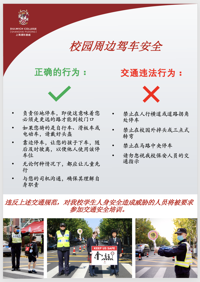 如果您计划驾车来校,或是聘请司机接送您的子女,请务必仔细阅读本页信息。如果您骑自行车或电瓶车来校,也请仔细阅读本页中的信息。
